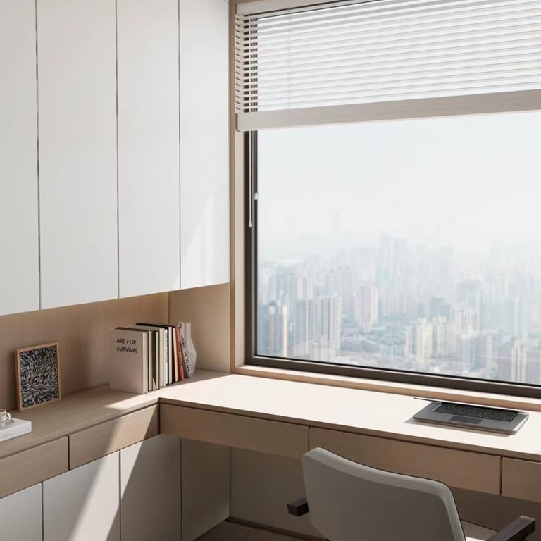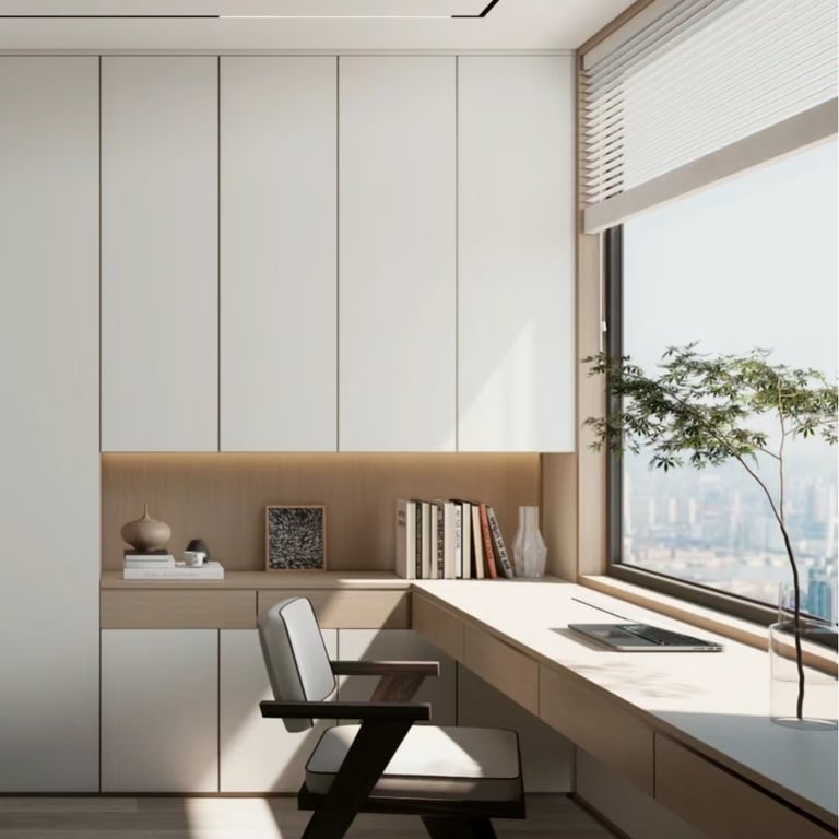 Designing a Serene Study Room: A Fusion of White and Wood Tones