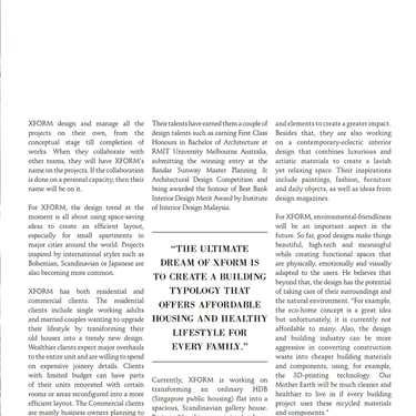 Each project at XFORM is a masterpiece in its own right. We aim to create multi-functional spaces that inspire and enrich daily life. Our designs are not just about aesthetics but also about enhancing the lifestyle and experience of our clients.