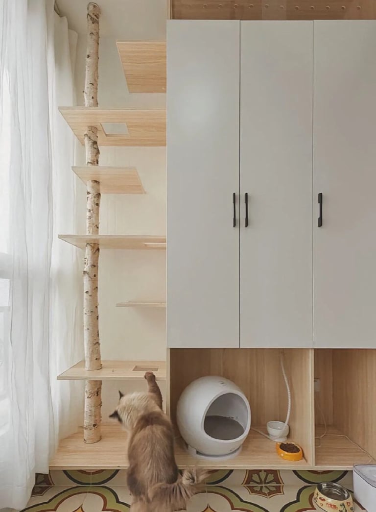 We excited to share some creative ideas and tips on indoor designs tailored for cats. If you’re a cat enthusiast, you will definitely be thrilled by these specially designed cat climbing trees, shelves, and cabinets. Save these ideas to create a cozy home for your feline friends!