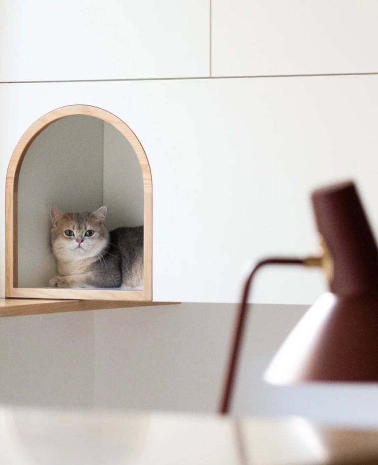 To integrate cat shelves into your interior design, choose designs and materials that match your furniture style. If your home has a modern style, opt for a sleek and stylish cat shelf made of metal or glass with clean lines. If you prefer a rustic style, choose a wooden cat shelf that pairs with warm colors and natural textures. This way, cat shelves can meet your cats' needs while blending seamlessly with your interior decor.