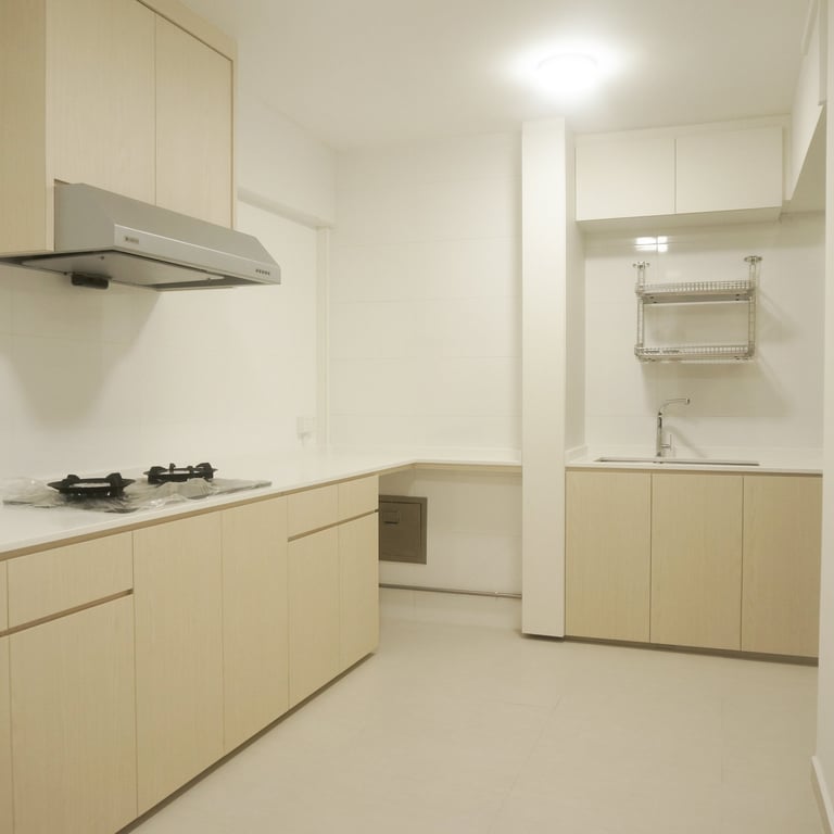Neutral Color Palette: The space is brought to life with a cohesive palette of neutral tones such as white, beige, and grey. This restrained color scheme contributes to a sense of calm and clarity, making the interiors feel more expansive and easy to maintain.