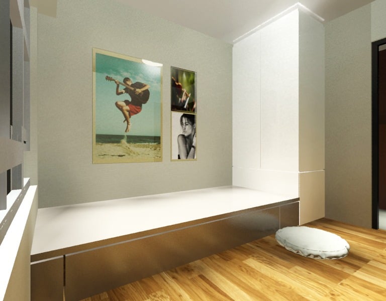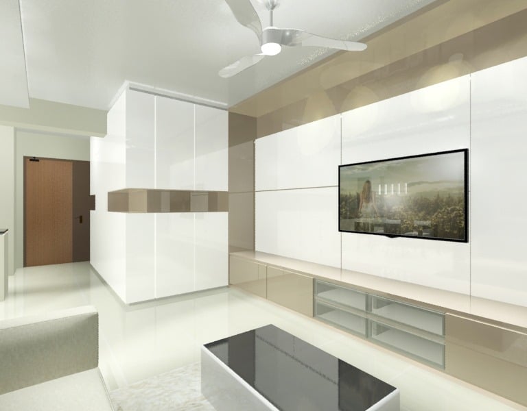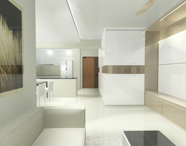Light-Colored Interior Design Concept with Integrated Storage Solutions