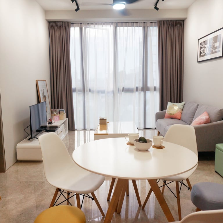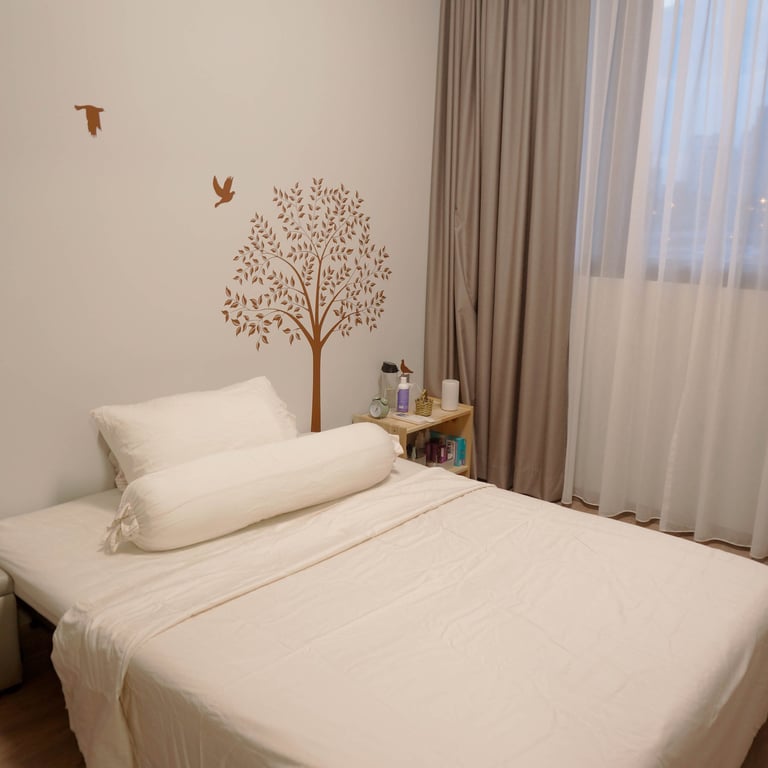 In the studio's bedroom area, comfort is key without overwhelming the space. We utilize raised platform beds with storage or sleek, wall-mounted beds to save floor space. Lightweight, layered textiles create a cozy yet airy atmosphere, and privacy curtains or stylish room dividers help separate the sleeping area from the rest of the studio.