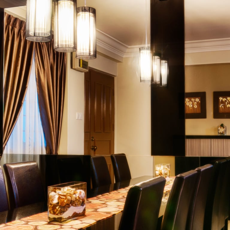 To further enhance the retro vibe, we incorporated furniture with rich, dark brown finishes, vintage decor accents, and carefully selected lighting. This design balances the warmth of dark tones with reflective surfaces and complementary colors, resulting in a space that feels both inviting and sophisticated.