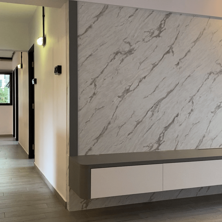 · Marble-Textured Feature Wall: A marble-textured wall adds a touch of luxury and sophistication, creating a refined contrast to the industrial elements.