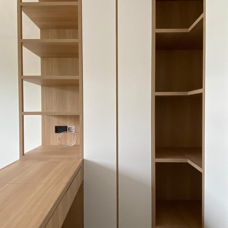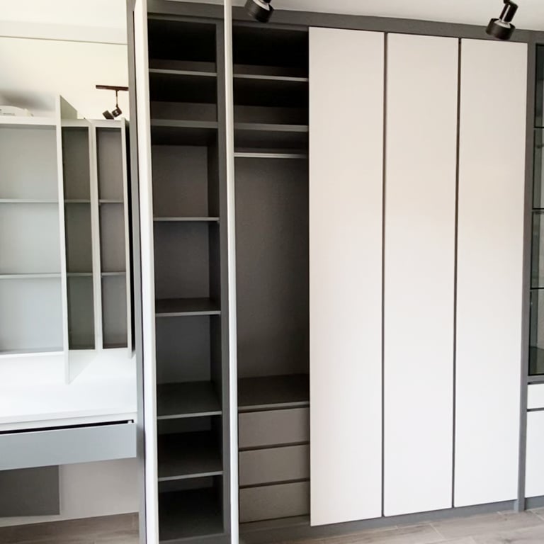 · Custom Carpentry and Display Accessories: Tailored carpentry and curated accessories blend modern minimalism with opulent touches, elevating the room’s overall aesthetic.