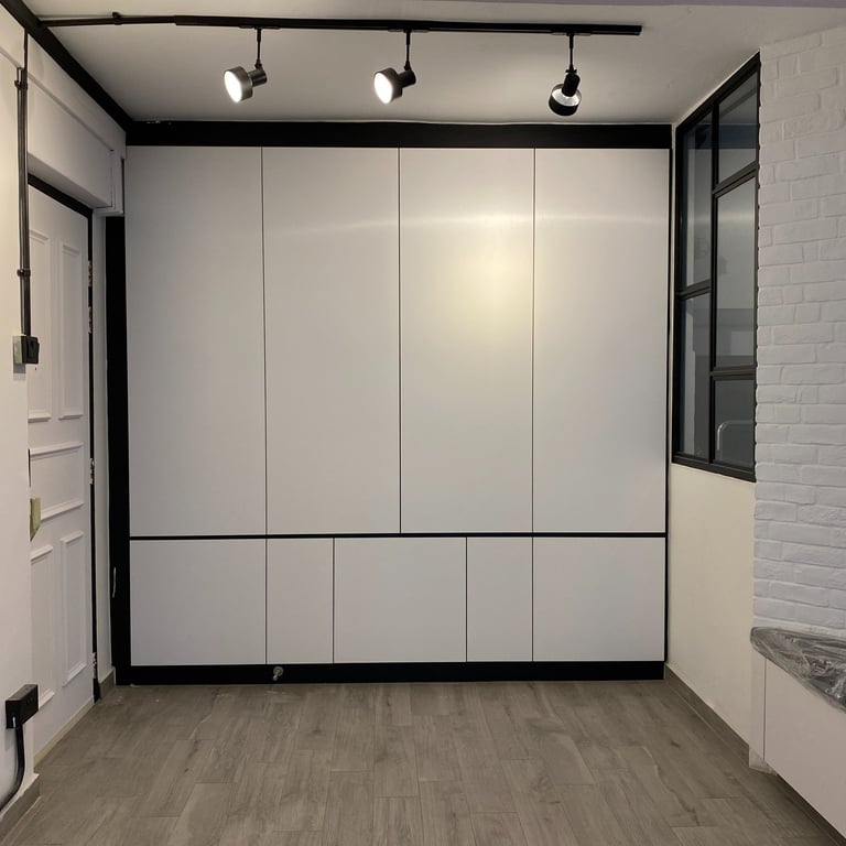 Rooted in industrial design, this living room also integrates modern and minimalist elements, emphasizing simplicity, functionality, and craftsmanship. Bespoke carpentry and sleek furnishings align perfectly with the room’s dimensions, creating a seamless and harmonious space.
