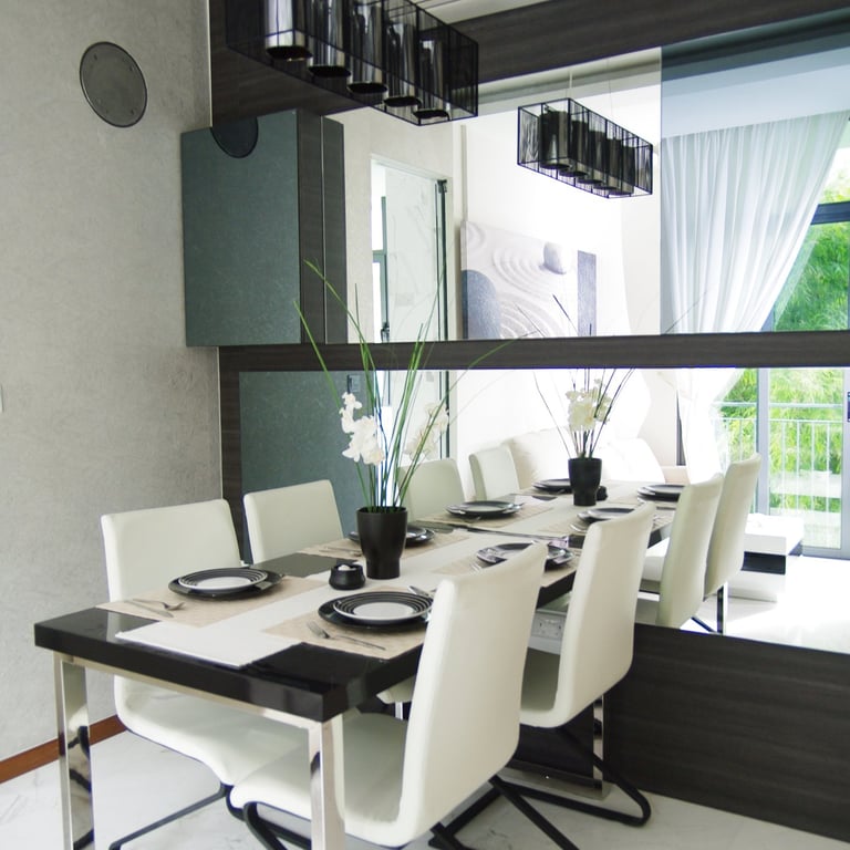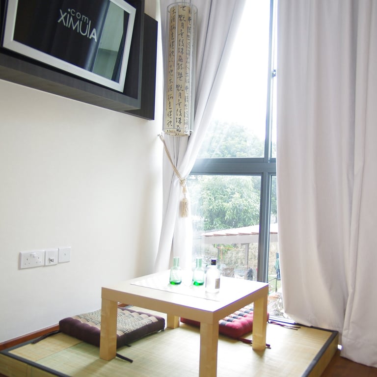 To evoke the calm of a Zen garden, the design incorporates glass, mirrors, and black bamboo finishes, creating a striking yet serene atmosphere. The existing bamboo grove adjacent to the window serves as a natural backdrop, enhancing the interior’s sense of calm and connection to nature.