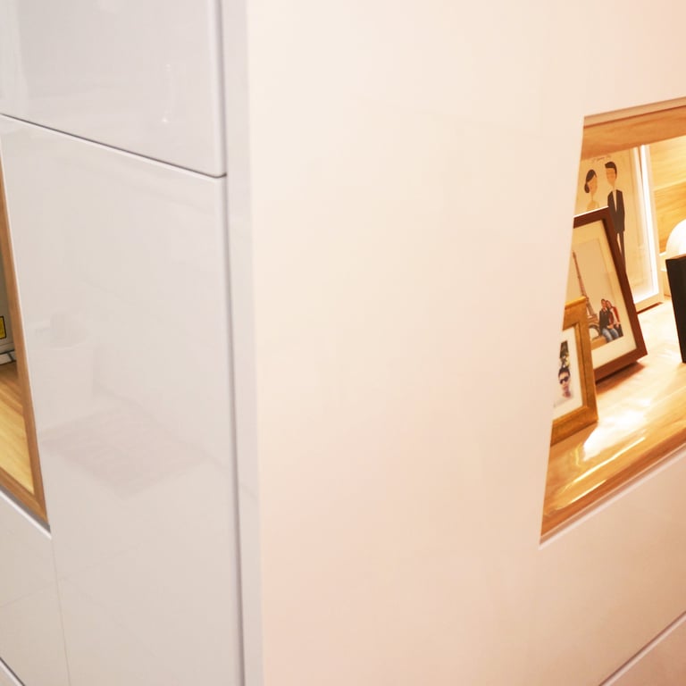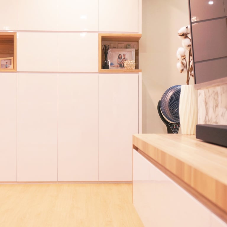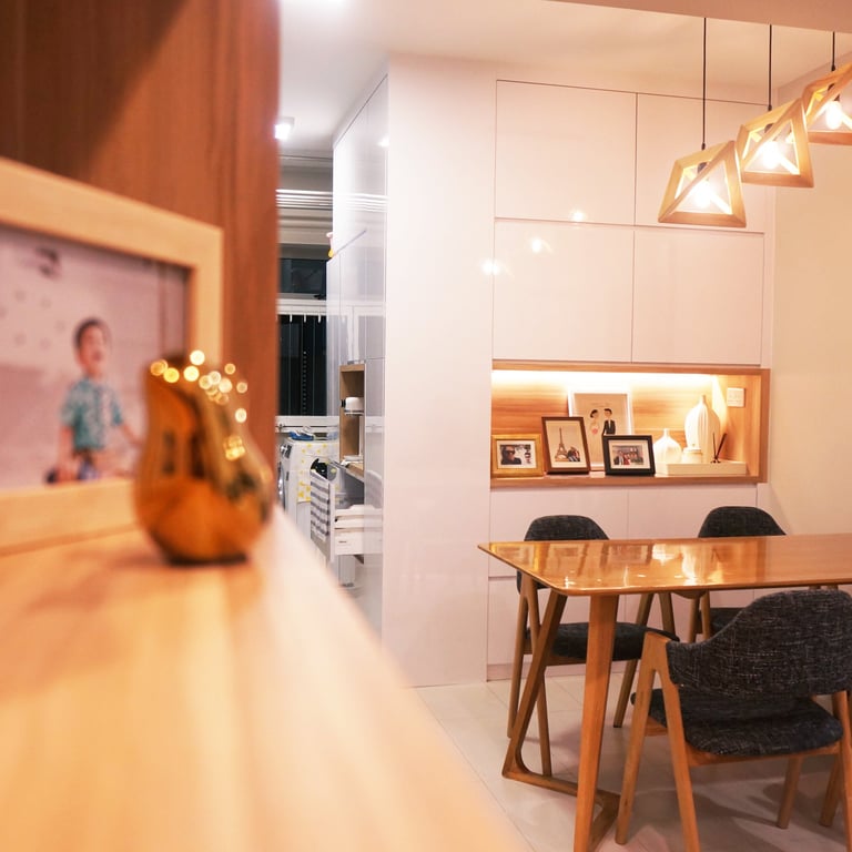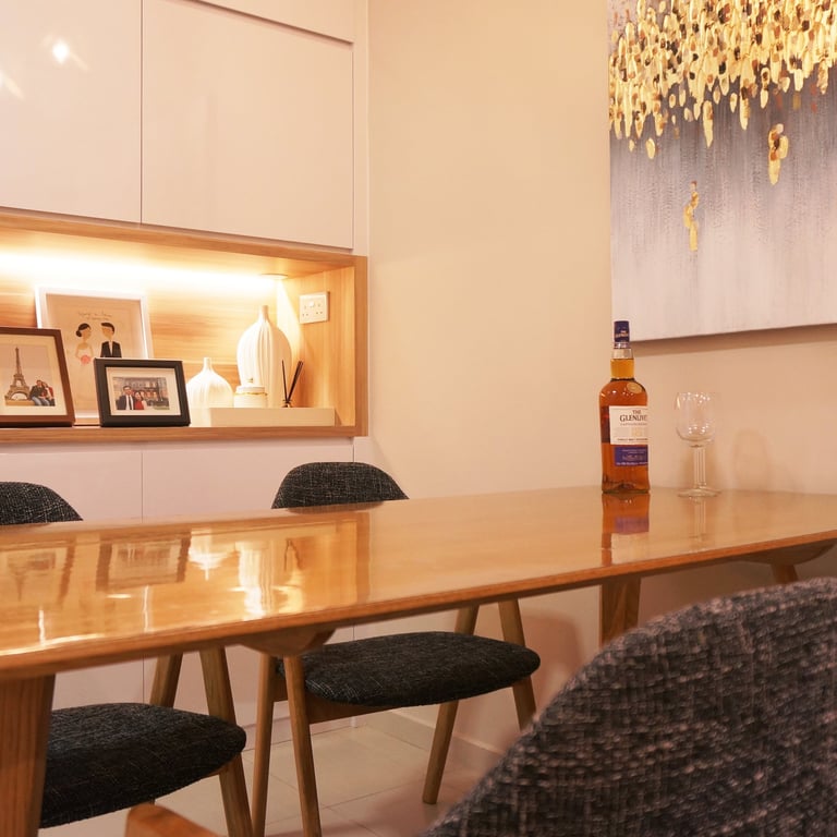 We’ve added extra storage cupboards and compartments in the kitchen, dining, and laundry areas to keep appliances and utilities organized, maintaining a neat and tidy space. These storage solutions include LED display shelves, seamlessly blending with the overall interior design.