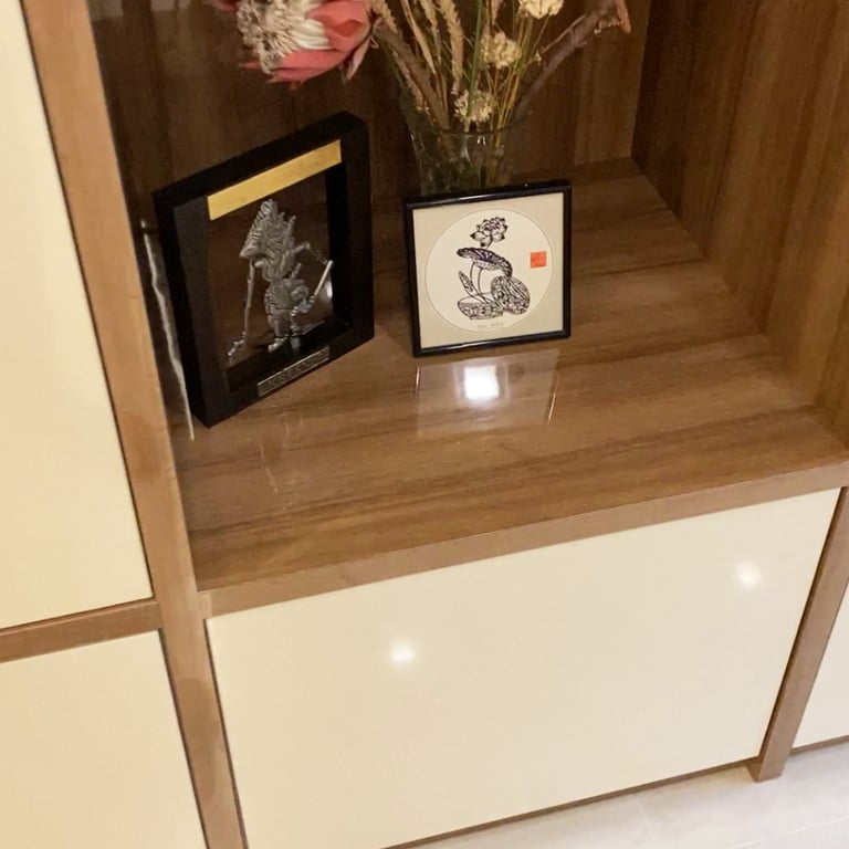 For this minimalist condo, we chose a refined colour scheme featuring faux wood tones paired with crisp white. This palette not only creates a tranquil and cohesive atmosphere but also enhances the condo's inherent beauty. The design focuses on simplicity and precision, ensuring that each element contributes to a serene and harmonious living environment.